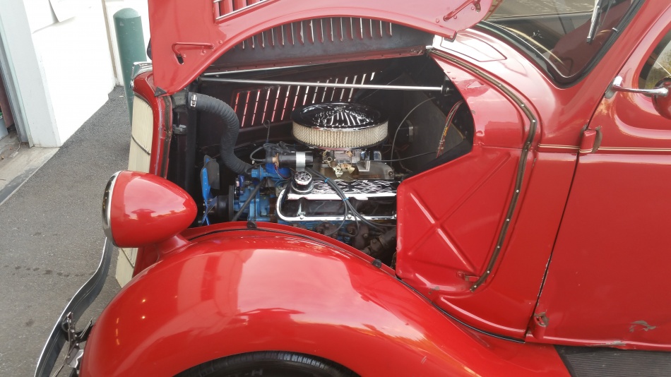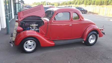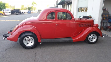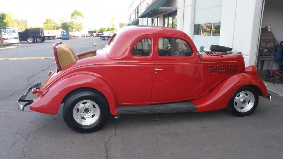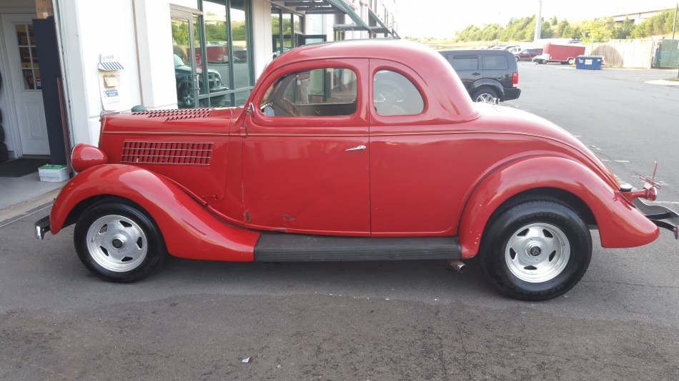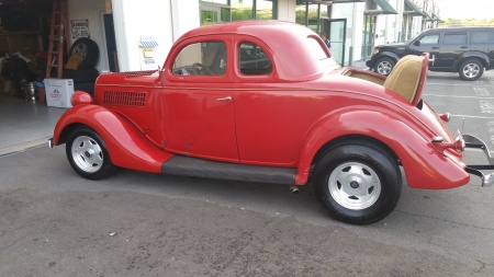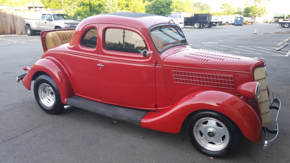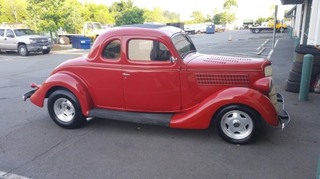 1935 Ford 2 door all steel coupe with rumble seat, washboard hood, Ford 302 V8, C-6 Automatic Transmission, and Ford 9 inch rear.